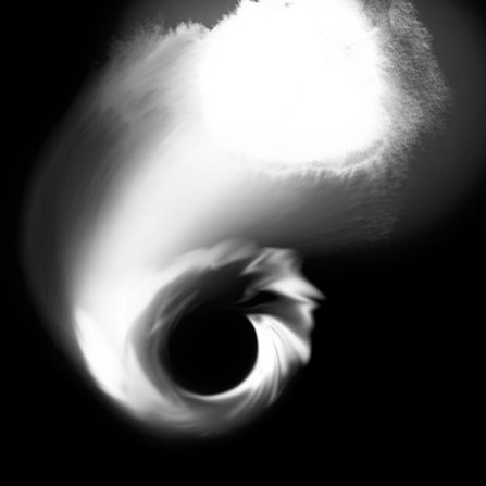 'White Hole' visualises the theoretical twin of a black hole. Very similar to a Black Hole, a White Hole could be big or small, stationary or spin, electrically charged, and surrounded by a ring of dust and debris. Discovered mathematically and not directly observed in our universe, White Holes are opposite to black holes because matter would come out instead of being pulled in. It would have a region of outward-flowing spacetime and, although it would still have an event horizon, would prohibit entry. Everything outside must stay outside, and everything inside must be ejected.